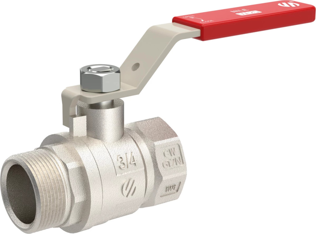 Az Arco 2330 PN25 gömbcsap fix KB menetes csatlakozással, nikkelezett szürke testtel és vörös karos fogantyúval. Kézi működtetésű, maximum 25 bar nyomású elzárócsap fűtési, ivóvíz- és vegyes rendszerekhez.