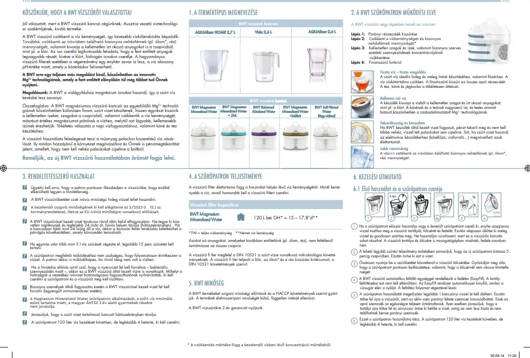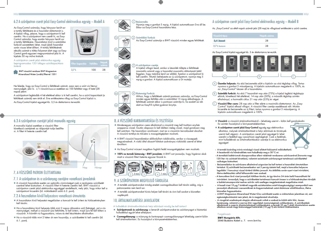 Az Aqualizer Home vízszűrő kancsó a BWT prémium kategóriás megoldása azoknak, akik friss, tiszta és ízletes vizet kívánnak fogyasztani otthonukban vagy irodájukban. A 2,7 literes űrtartalmú kancsó elegendő mennyiséget biztosít akár többfős család vagy munkahely számára. A csomagban található Magnesium Mineralized betét többfunkciós – csökkenti a csapvízben található íz- és illatrontó anyagokat, a víz keménységét, valamint a szűrt vízhez magnéziumot juttat, amely elengedhetetlen ásványi anyag a szervezet számára.