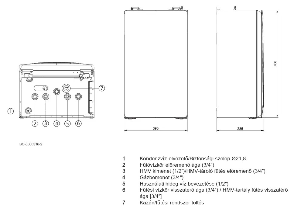 • Kivitel: fali, kondenzációs gázkazán; elérhető kombi (fűtés és használati melegvíz) és csak fűtő változatban.