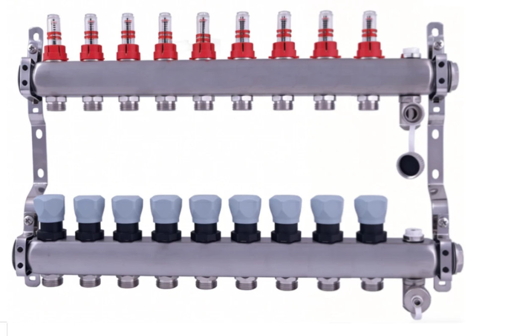 A DELTA inox osztó-gyűjtő 9 körös kivitelben, beépített szelepekkel és áramlásmérőkkel, ideális padlófűtési és fűtési rendszerekhez. Eurokonuszos csatlakozással, tartós rozsdamentes acél kivitelben.