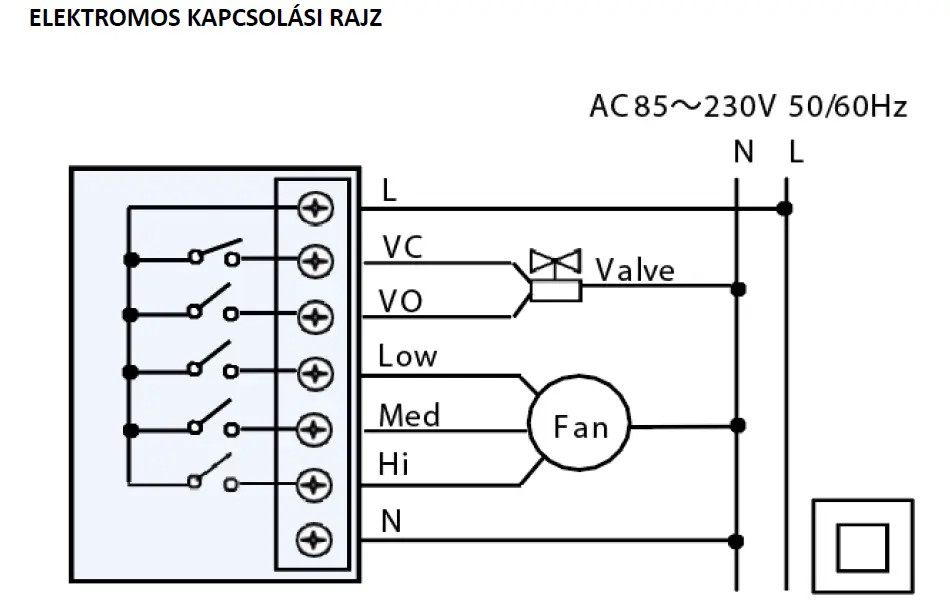 A szelepvezérlő funkció gondoskodik arról, hogy a beállított hőmérséklet elérése után a szelep zárjon, de a ventilátor tovább működjön a levegő egyenletes eloszlatása érdekében.