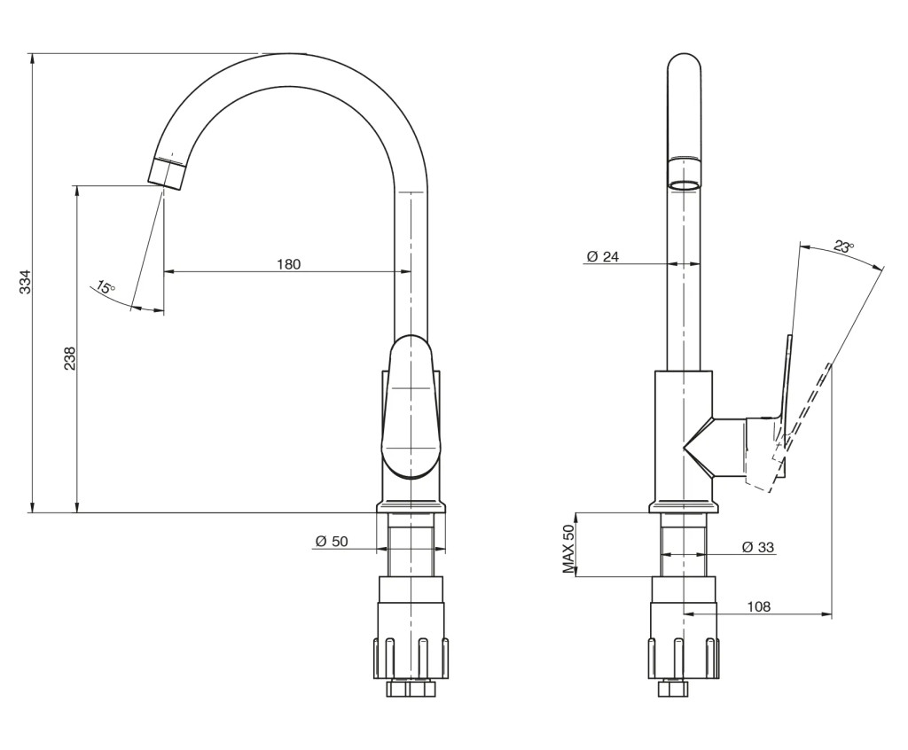A forgatható, 180 mm-es kifolyócső nagy szabadságot ad a mosogató teljes területének eléréséhez – így a nagyobb edények tisztítása is egyszerűbb. A beépített vízkőmentes perlátor (M22×1) gondoskodik arról, hogy a vízsugár lágy és egyenletes maradjon, a vízkőlerakódás pedig minimálisra csökkenjen. Ez nemcsak kényelmesebbé teszi a használatot, de meghosszabbítja a csaptelep élettartamát is.