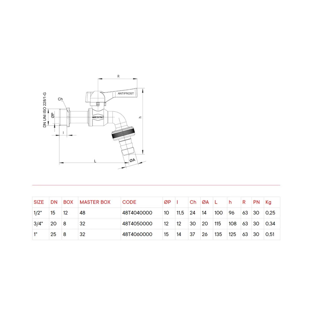 TECNOVIELLE fagymentes kerti csap tömlővéggel, 3/4"