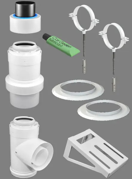 Tricox KULCS05 110/160-as koaxiális füstgázelvezető rendszerhez való külsőfali szerelőcsomag.