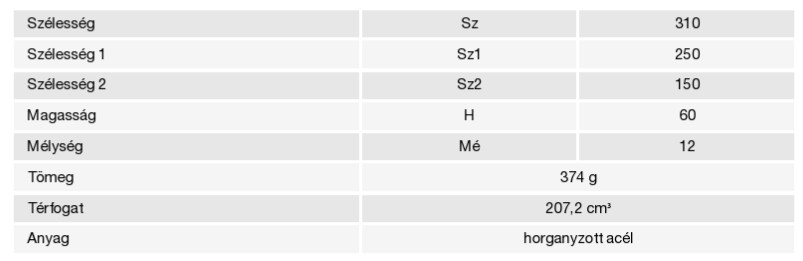 - Anyaga: Horganyzott acél, amely kiváló korrózióvédelmet nyújt a telepítési környezetben.