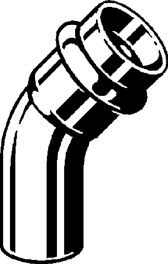 - Kialakítás: 45°-os ív, préscsatlakozó x bedugóvég (KB kivitel).