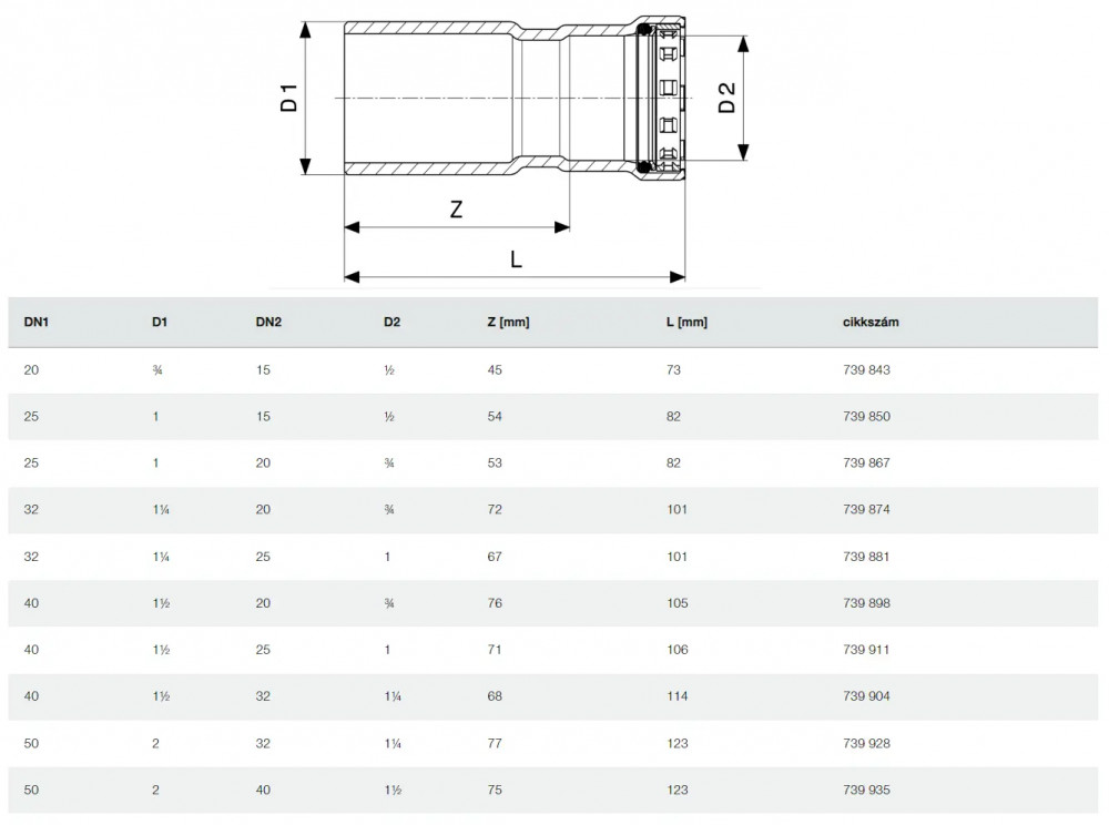 VIEGA 4615.1 Megapress G szűkítő idom gázra, 1" x 3/4"